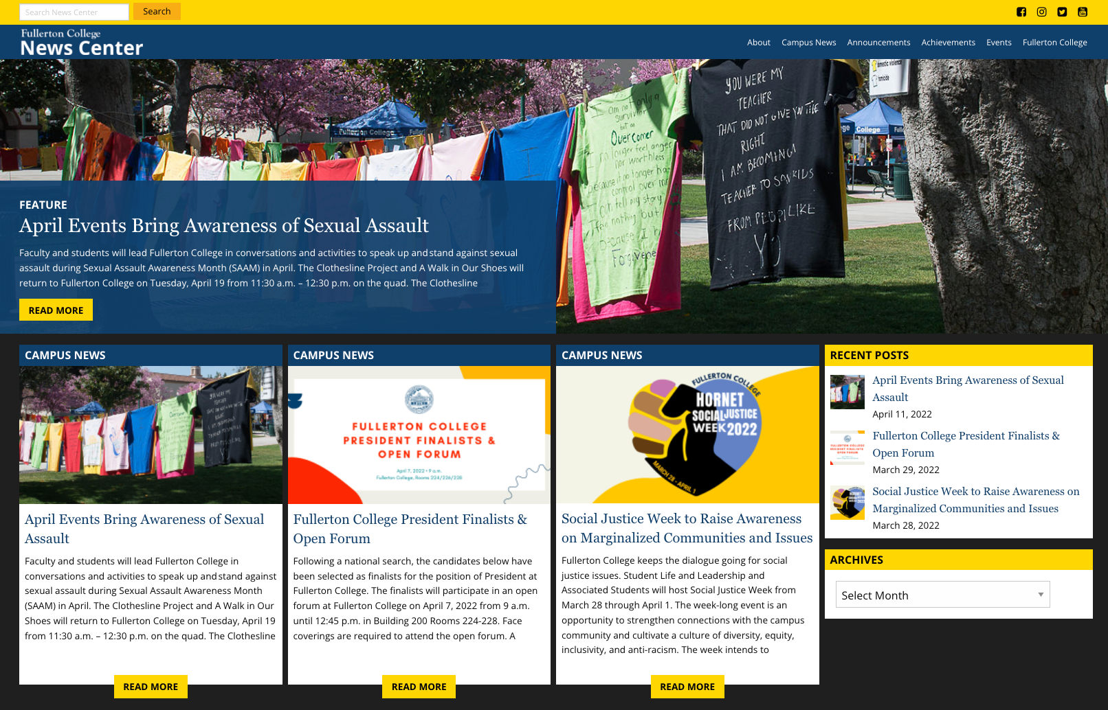 Fullerton College News Center Website